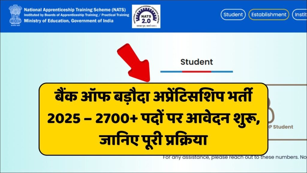 Bank of Baroda Apprentice Recruitment 2025: बैंक ऑफ बड़ौदा अप्रेंटिसशिप भर्ती 2025 – 2700+ पदों पर आवेदन शुरू, जानिए पूरी प्रक्रिया