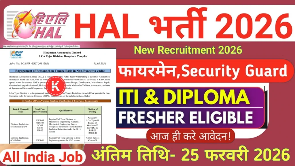 हिंदुस्तान एरोनॉटिक्स लिमिटेड (HAL) ने वर्ष 2026 में टेक्नीशियन पदों पर भर्ती की घोषणा की है। यह अवसर उन युवाओं