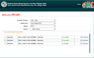 बी.एन. मंडल यूनिवर्सिटी की पी.जी सेकंड मेरिट लिस्ट 11 नवंबर 2025 को जारी की गई है।