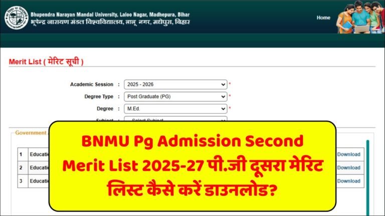 BNMU Pg Admission Second Merit List 2025 Out:- बी.एन. मंडल यूनिवर्सिटी (BNMU) मधेपुरा द्वारा पीजी (Post Graduation) एडमिशन 2025-27 सत्र के …