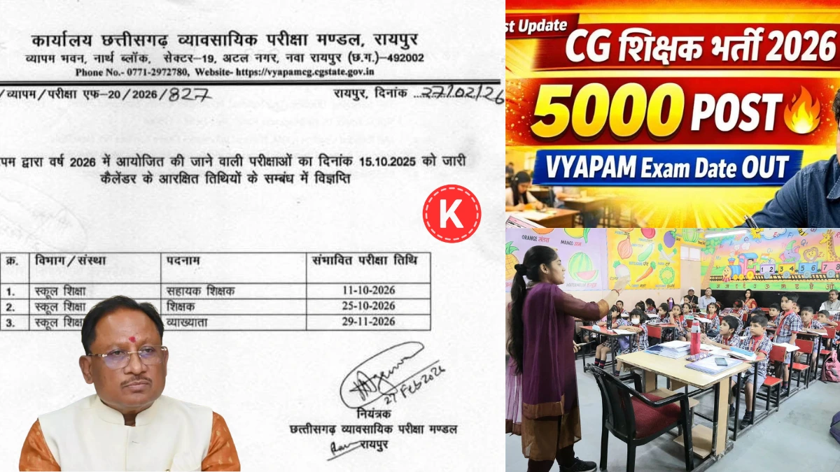 छत्तीसगढ़ में शिक्षक बनने का सपना देख रहे उम्मीदवारों के लिए CG Vyapam Teacher Recruitment 2026 एक बड़ा अवसर लेकर आया है। यह भर्ती प्रक्रिया राज्य के सरकारी स्कूलों में योग्य शिक्षकों की नियुक्ति के लिए आयोजित की जाती है। यदि आप स्थायी सरकारी नौकरी चाहते हैं और शिक्षा क्षेत्र में करियर बनाना चाहते हैं, तो यह अवसर आपके लिए महत्वपूर्ण है।