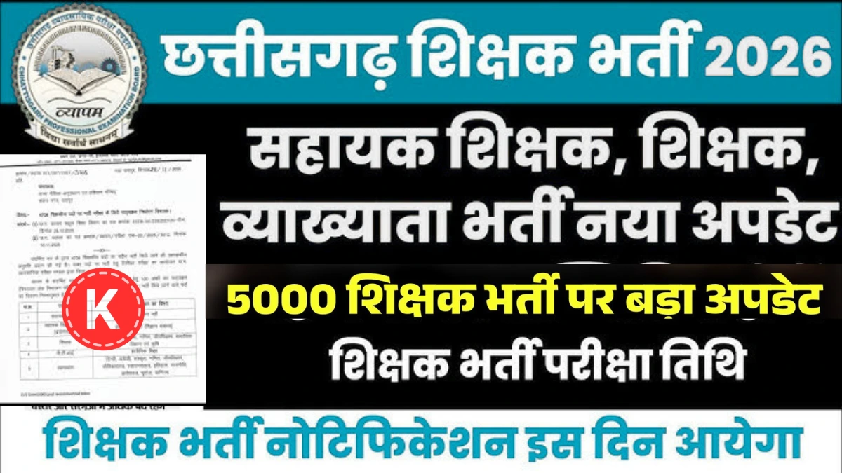 छत्तीसगढ़ व्यावसायिक परीक्षा मंडल (CG Vyapam) ने वर्ष 2026 में शिक्षक पदों के लिए भर्ती प्रक्रिया शुरू की है। यह भर्ती उन योग्य उम्मीदवारों के लिए अवसर प्रदान करती है, जो सरकारी स्कूलों में शिक्षण क्षेत्र में अपना करियर बनाना चाहते हैं। इस भर्ती में उम्मीदवारों का चयन लिखित परीक्षा और साक्षात्कार के आधार पर किया जाएगा।