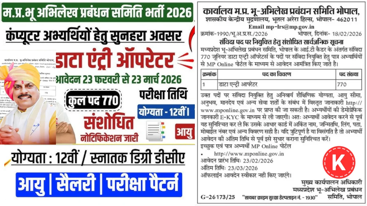 मध्य प्रदेश में सरकारी नौकरी की तलाश कर रहे उम्मीदवारों के लिए वर्ष 2026 में MP Bhulekh Vacancy एक महत्वपूर्ण अवसर लेकर आई है। इस भर्ती के माध्यम से BHU अभिलेख प्रबंधन समिति में डेटा एंट्री ऑपरेटर और अन्य पदों पर भर्ती की जाएगी। यह भर्ती राज्य प्रशासन में पारदर्शिता और दक्षता बढ़ाने के साथ-साथ युवाओं को स्थिर रोजगार का अवसर देती है।