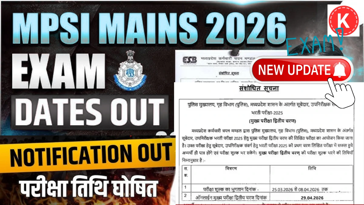 भोपाल। मध्य प्रदेश पुलिस में सब इंस्पेक्टर (SI) और सूबेदार (Subedar) पदों पर भर्ती के लिए होने वाली मुख्य परीक्षा की तारीख को लेकर एक बार फिर बड़ा बदलाव हुआ है। मध्य प्रदेश कर्मचारी चयन मंडल (MPESB) ने संशोधित नोटिस जारी करते हुए अब यह परीक्षा 29 अप्रैल 2026 को आयोजित करने का निर्णय लिया है। यह जानकारी सामने आने के बाद हजारों अभ्यर्थियों में मिली-जुली प्रतिक्रियाएँ देखने को मिल रही हैं।