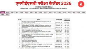मध्य प्रदेश कर्मचारी चयन बोर्ड (एमपीईएसबी) ने वर्ष 2026 के लिए अपना संपूर्ण परीक्षा कैलेंडर जारी कर दिया है। यह कैलेंडर जनवरी से दिसंबर 2026 तक आयोजित होने वाली विभिन्न भर्ती परीक्षाओं, प्रवेश परीक्षाओं और पात्रता परीक्षाओं की एक प्रारंभिक रूपरेखा प्रस्तुत करता है। राज्य के लाखों युवाओं के लिए यह कैलेंडर सरकारी नौकरियों की तैयारी के लिए एक स्पष्ट रोडमैप का काम करेगा।